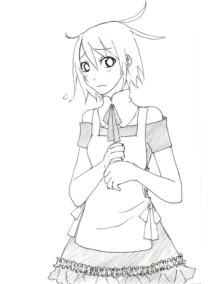 う~ん、私が描いても、メイド服の可愛さと、エルーの可愛さが伝わらないぞ(^ω^)困った困ったwwwww